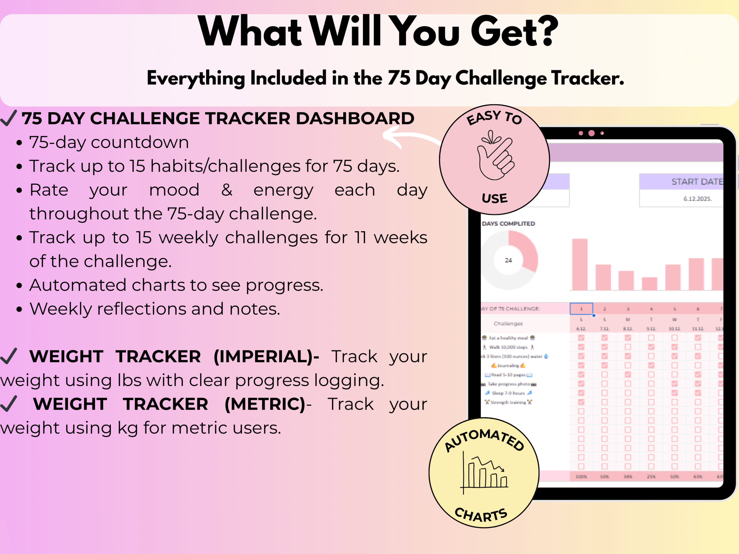What This 75 Day Challenge Tracker Spreadsheet Does